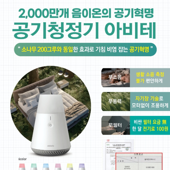 음이온, 살균정화, 무필터, 무소음, 저전력